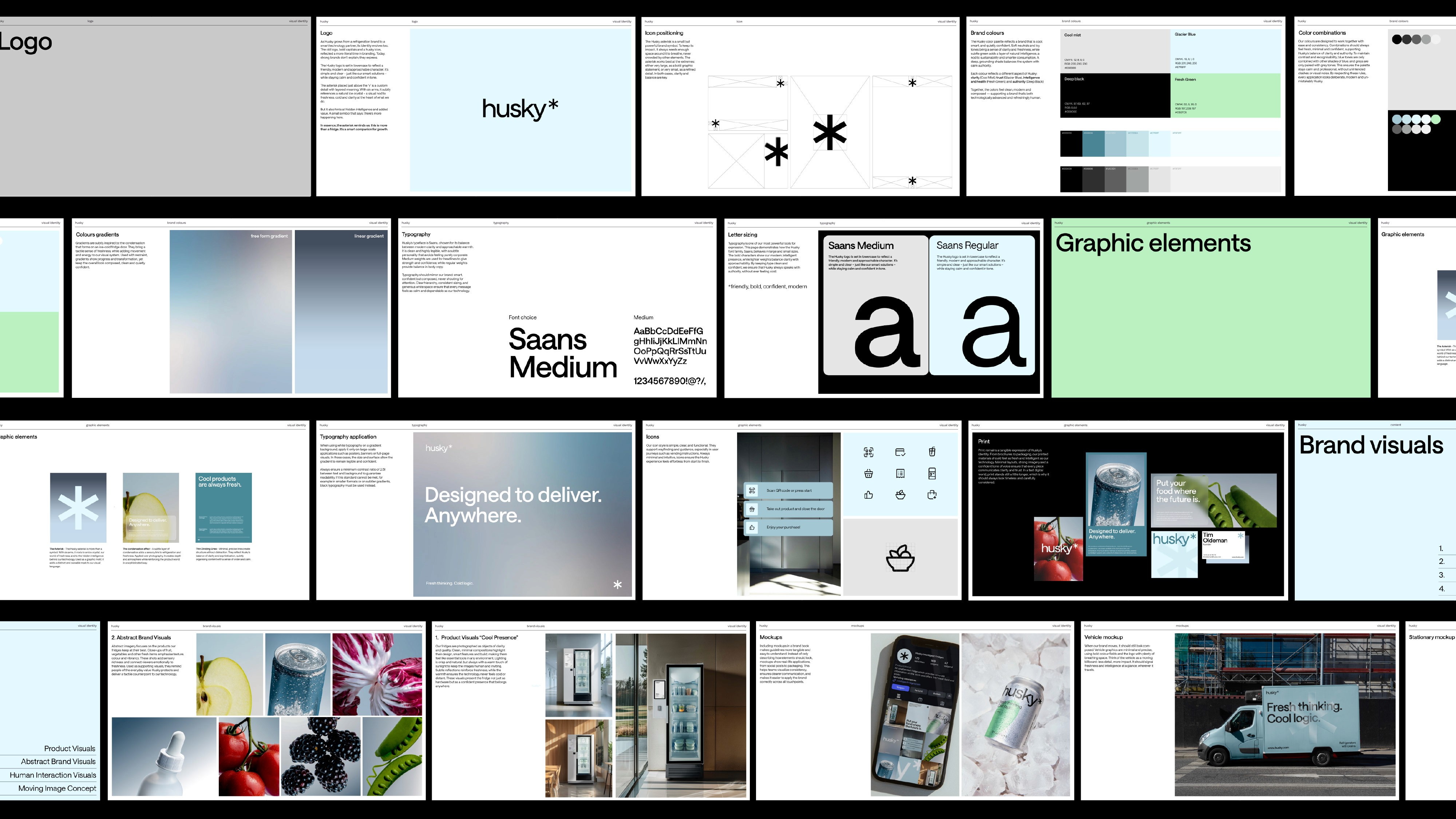 We startten vanuit de essentie van Husky: een technologiebedrijf dat op de achtergrond werkt als slimme enabler voor retailers. Niet een merk dat zelf op de voorgrond staat, maar een systeem dat ondernemers helpt hun business slimmer te laten groeien. Vanuit die positie ontwikkelden we de visuele identiteit. Het logo kreeg een modernere, toegankelijke vorm in lowercase typografie. Het asterisk-symbool verwijst subtiel naar een ijskristal en staat voor de verborgen intelligentie achter Husky’s technologie. De visuele taal combineert koele, heldere kleuren met minimalistische typografie en grafische elementen die verwijzen naar technologie en versheid. Subtiele gradients en lichte condensatie-effecten brengen dat gevoel van koeling en frisheid in het ontwerp. Zo ontstond een flexibel visueel systeem dat doorloopt in brand visuals, fotografie en digitale toepassingen en zorgt voor een consistente, herkenbare merkuitstraling.