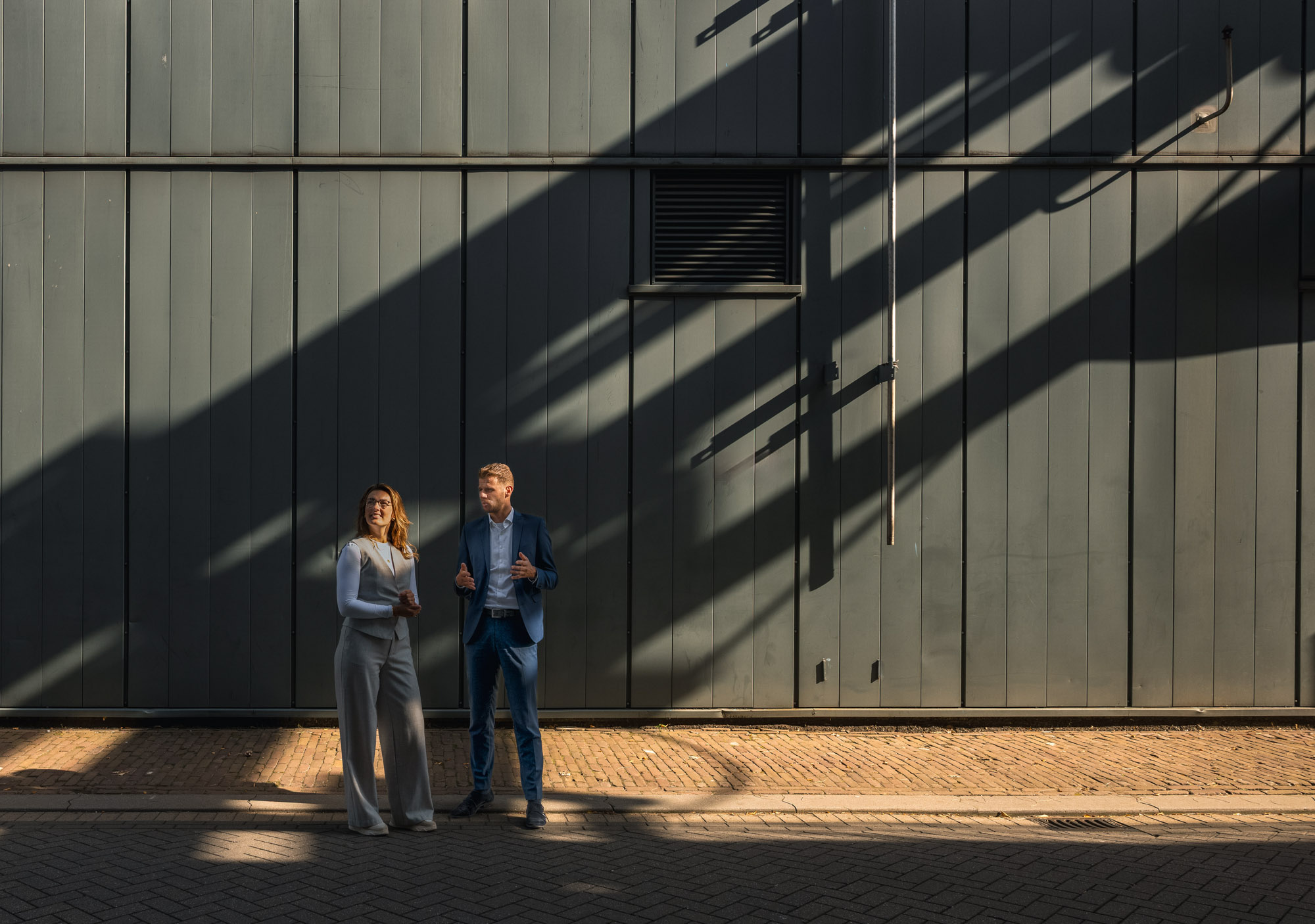 We ontwikkelden een fotografisch concept op basis van licht, schaduw en echte interactie. In plaats van geposeerde scènes kozen we voor momenten waarin mensen daadwerkelijk samenwerken. Staand of zittend, in gesprek, overleggend of lachend. Het zachte, warme licht en de gelaagde schaduwen zorgen voor diepte en beweging, en verwijzen subtiel naar groei en vooruitgang.